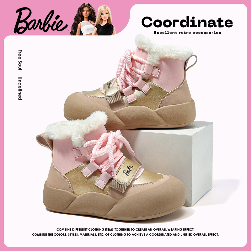 冬季 2025新款 时尚 加绒加厚鞋 芭比童鞋 子雪地靴儿童大棉鞋 女童棉鞋