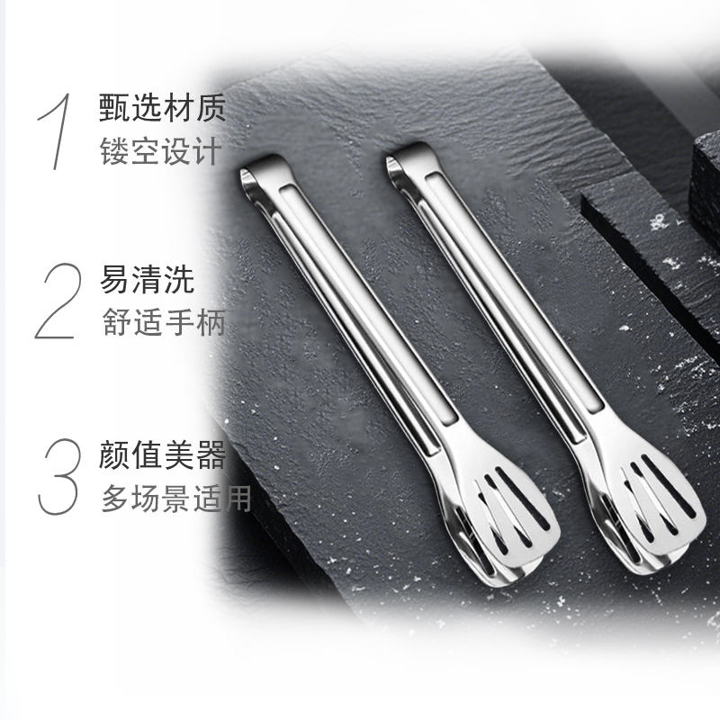 HOUYA304不锈钢食品夹子煎牛排专用烤肉夹面包烧烤食物夹厨房家用