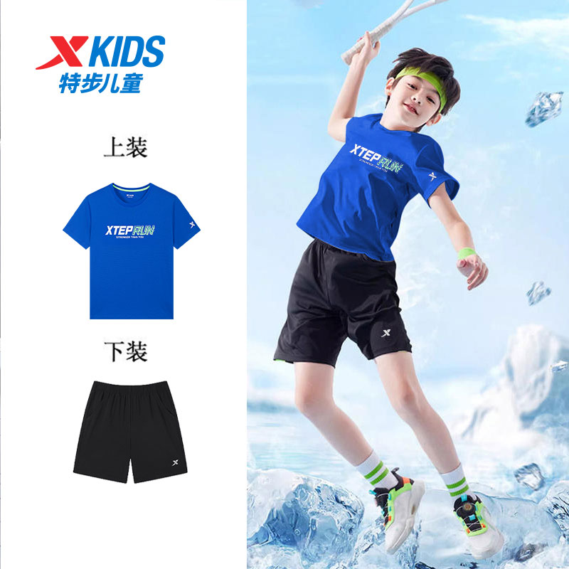 儿童速干运动服大童夏装 特步童装 新款 2025秋季 男 男童休闲两件套装