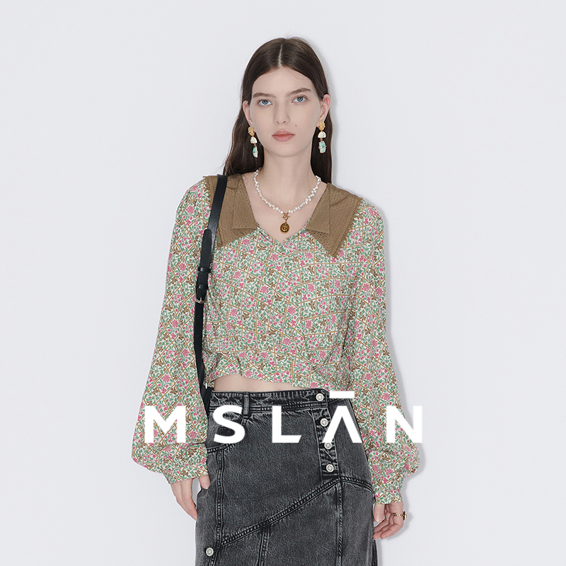MFCM1411 露腰印花套衫 艺术家联名 MSLAN春夏文艺翻领短款