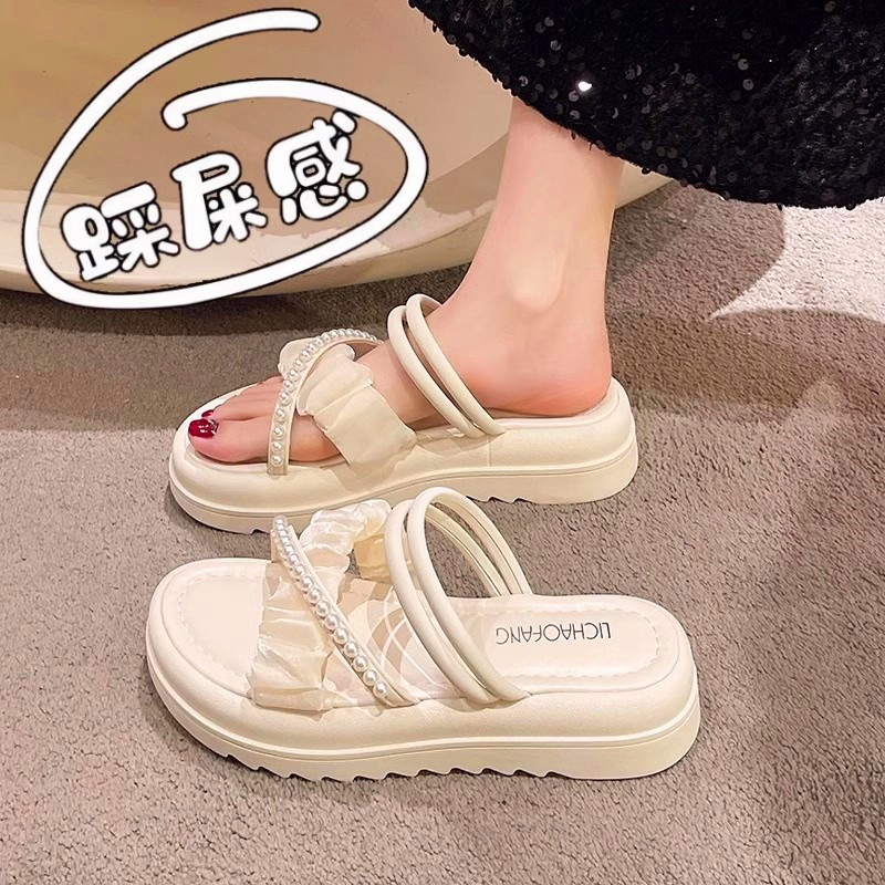 懒人时尚 外出厚底休闲沙滩凉鞋 孕妇一字拖 女夏外穿2025新款 凉拖鞋