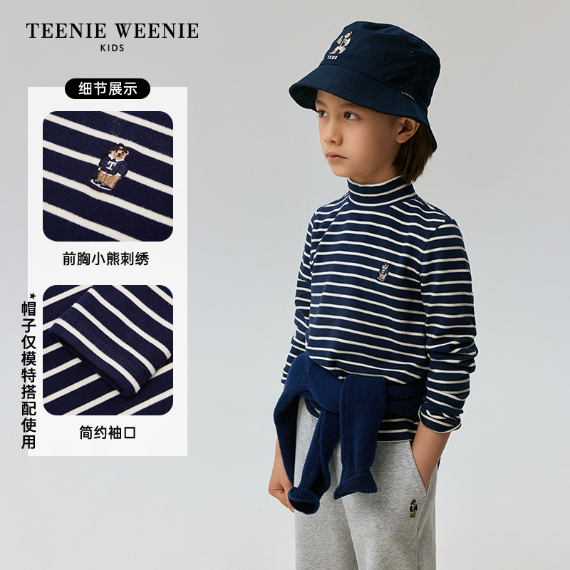 Kids小熊童装 TeenieWeenie 秋冬男女童宝保温立领条纹T恤 预售