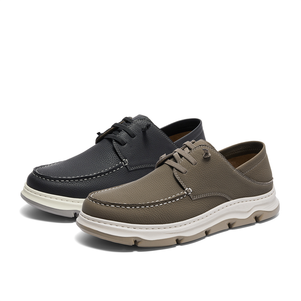 2025秋冬新款 男鞋 商务鞋 增高皮鞋 子 软底休闲系带圆头正装 奥康男鞋