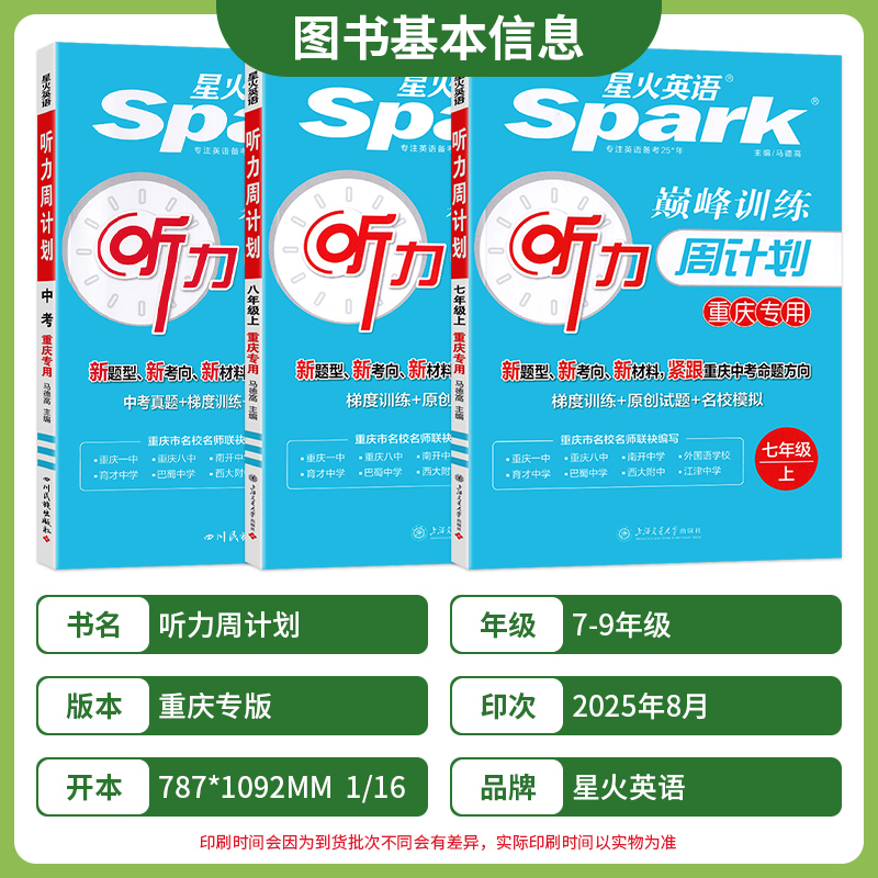 2026届听力周计划星火英语重庆专版 七年级八年级九年级中考上下册巅峰训练完形填空与阅读理解中考英语概要补全初中听力组合训练