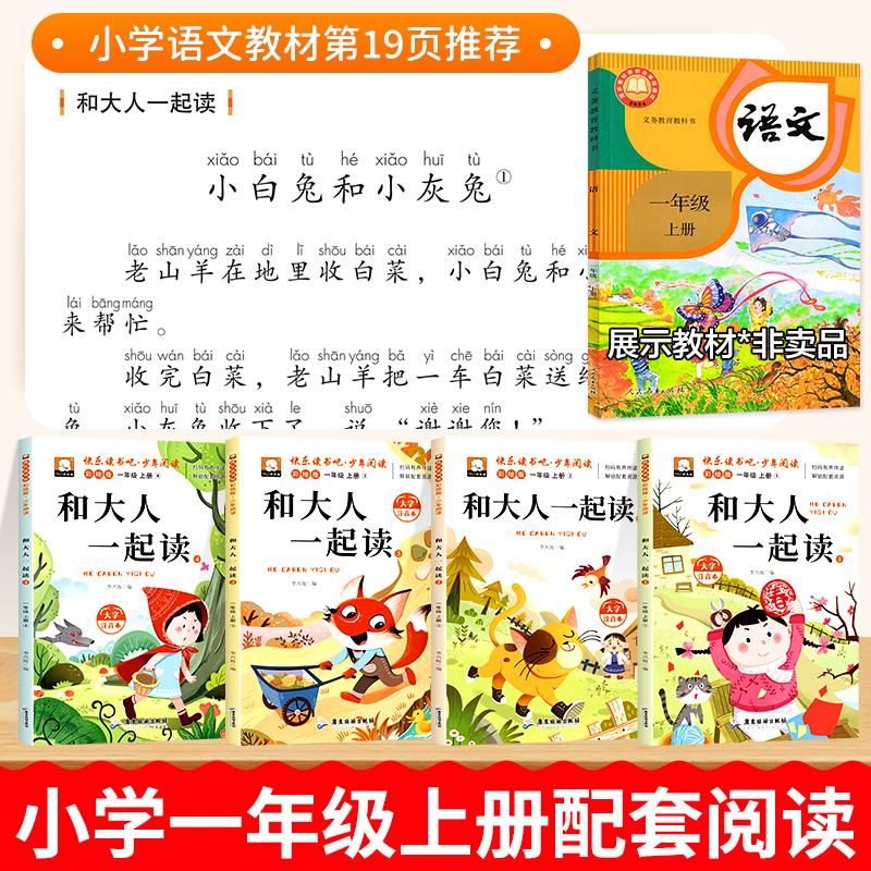 配套人教版 老师推荐 儿歌童谣国学启蒙童话故事 注音版 和大人一起读全套4册一年级上册阅读课外书必读快乐读书吧一上小学生书籍正版