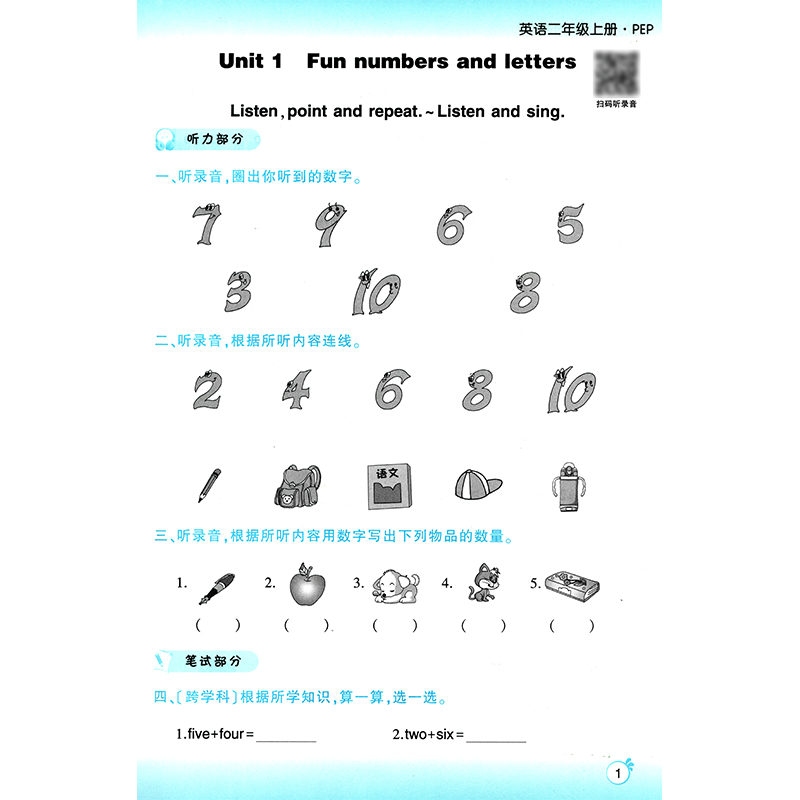 检测试卷含答案扫码 PEP二年级上册英语全能检测课时作业单元 听听力2上同步练习 人教版 2025年新版
