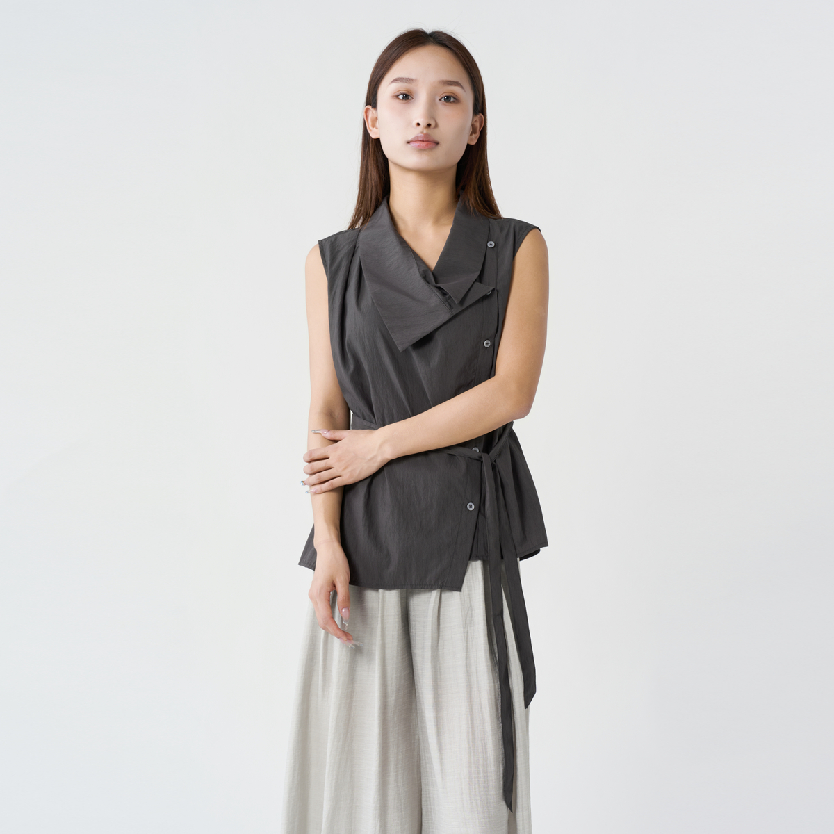 复古气质无袖 西町村屋不对称解构小衫 新款 夏季 上衣XHAB10321 女装