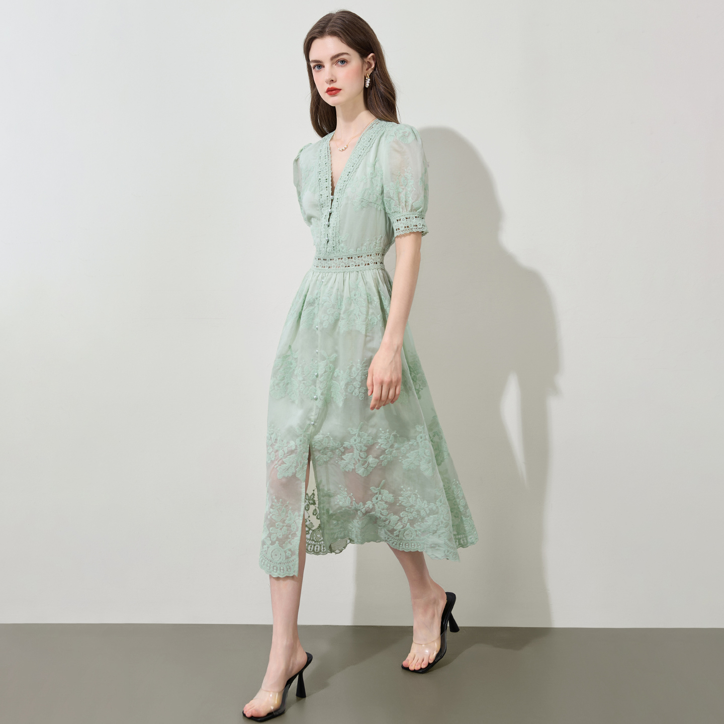 收腰短裙 微胖mm高端复古重工花边刺绣连衣裙女夏无袖 XZY 欣争艳