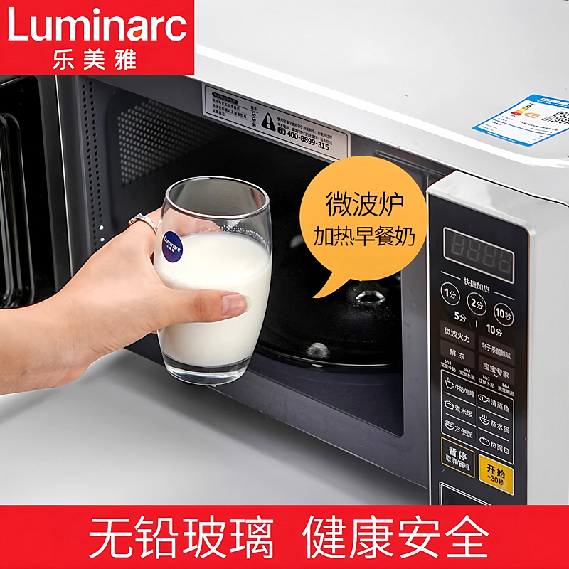 乐美雅玻璃杯牛奶杯早餐杯家用耐热喝水杯子茶杯喝牛奶专用果汁杯