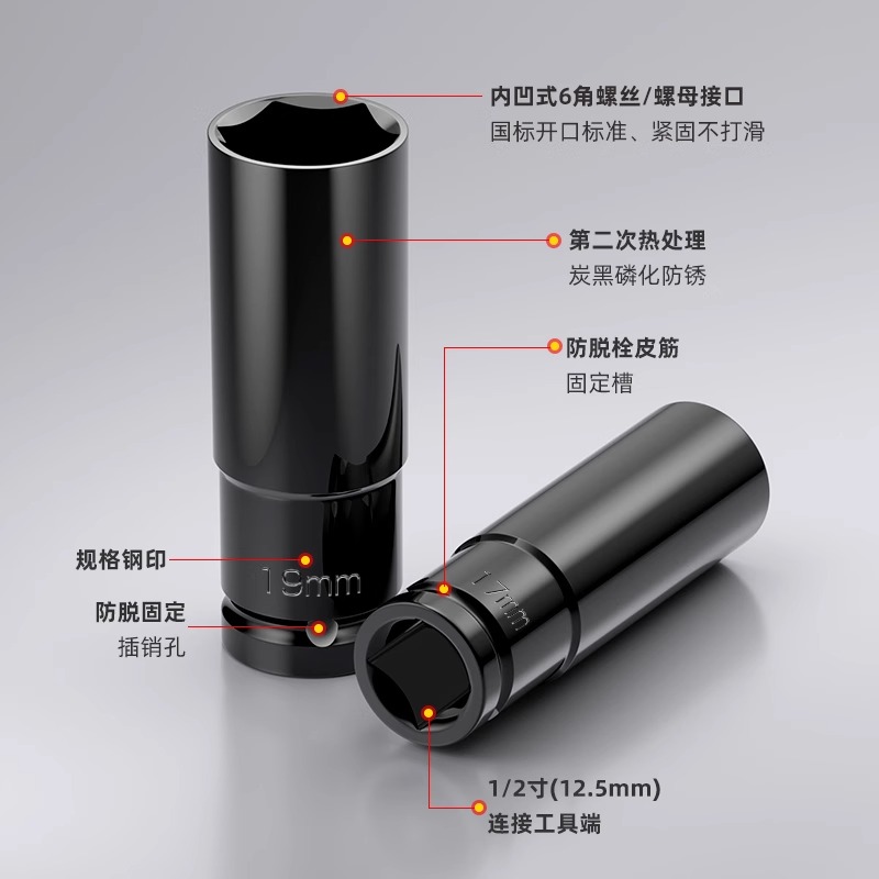 2内六角套筒12.5mm6角套筒头电动套管大飞工具套筒扳手配件套装