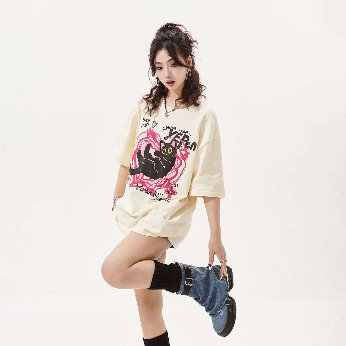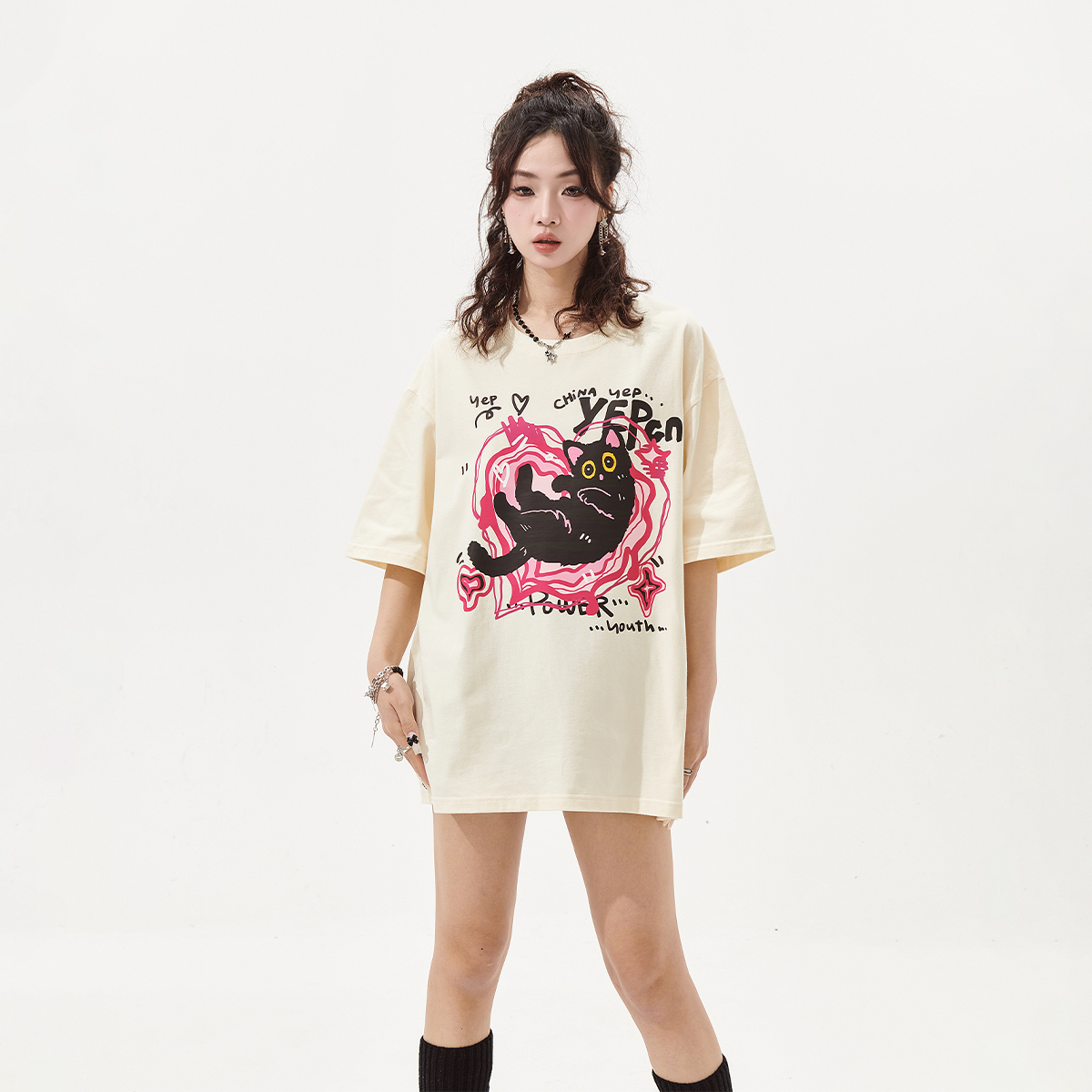 宽松oversize上衣 潮牌情侣装 YEP卡通印花短袖 t恤女2025年春夏新款
