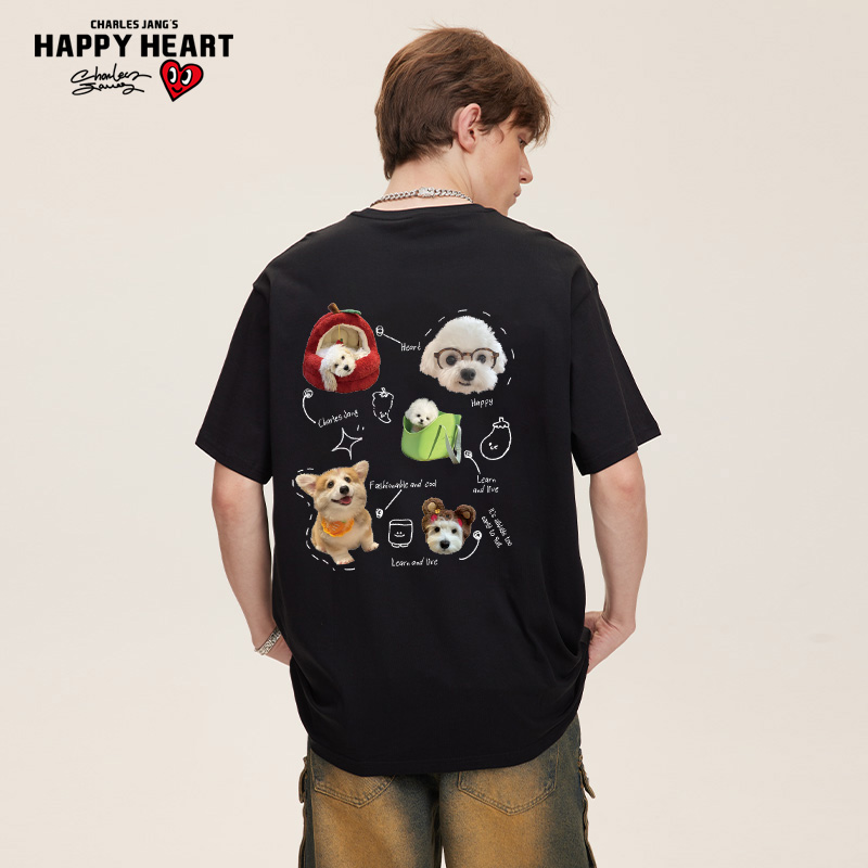洋气夏季 情侣圆领印花卡通T恤宽松上衣韩版 纯棉短袖 查尔斯桃心