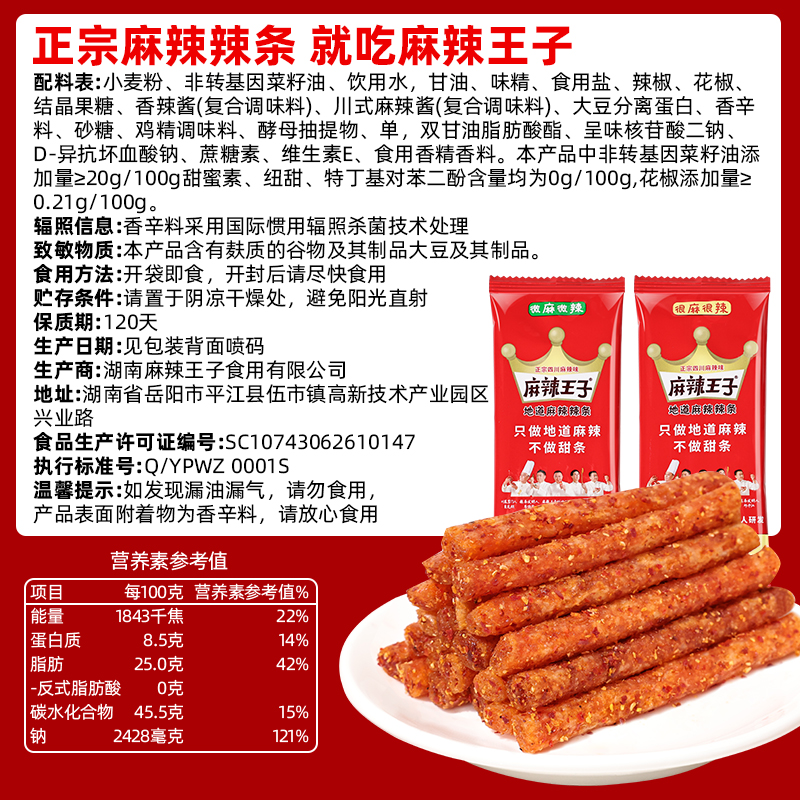 麻辣王子微麻微辣狠辣狠辣地道麻辣辣条小包装 解馋零食面筋制品