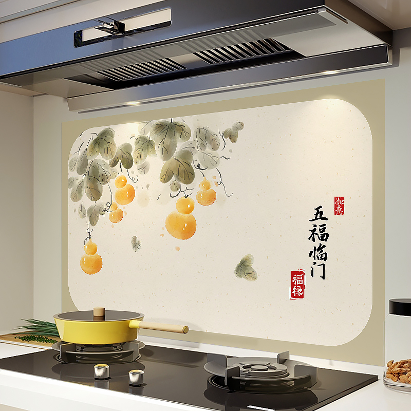 中式 饰 葫芦贴纸灶台墙贴厨房防油贴画墙壁纸橱柜贴2025蛇年新年装