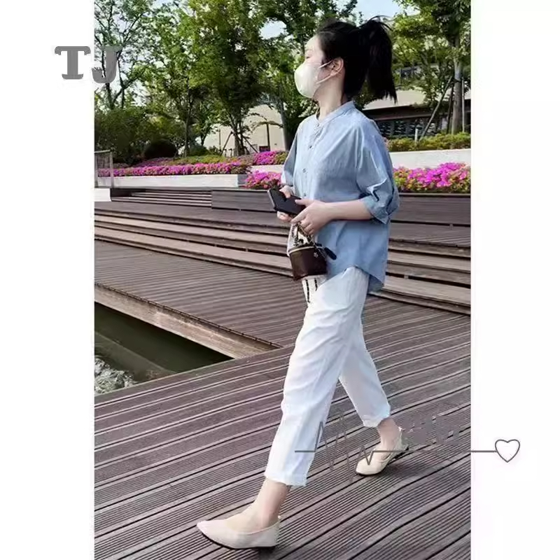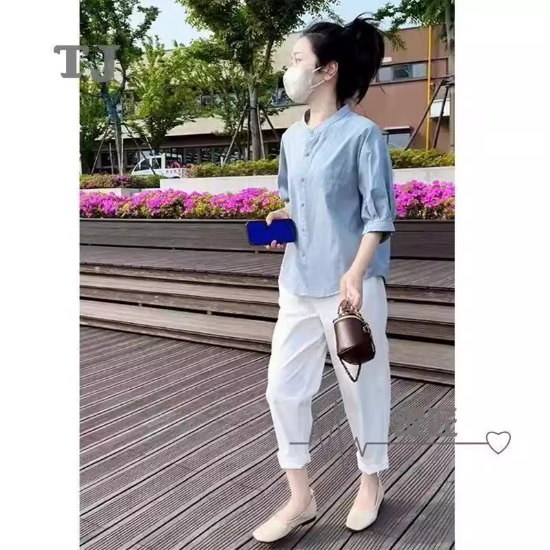 裤 今年流行漂亮夏装 两件套装 炸街减龄小个子衬衫 女 搭配一整套时尚