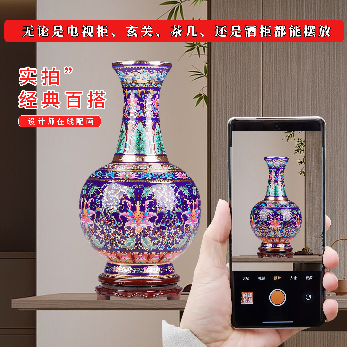 景德镇陶瓷器珐琅彩花瓶摆件客厅插花瓶装 饰品家居工艺品礼品摆设