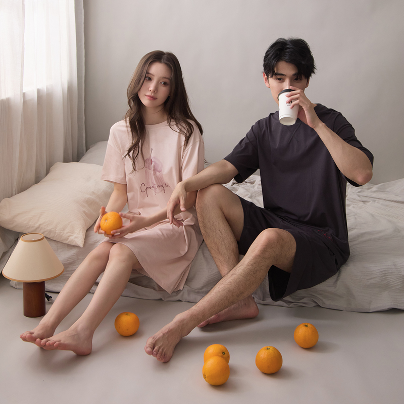 可爱日系睡裙短袖 女款 短裤 家居服套装 RoseTree睡衣情侣装 男士 夏季