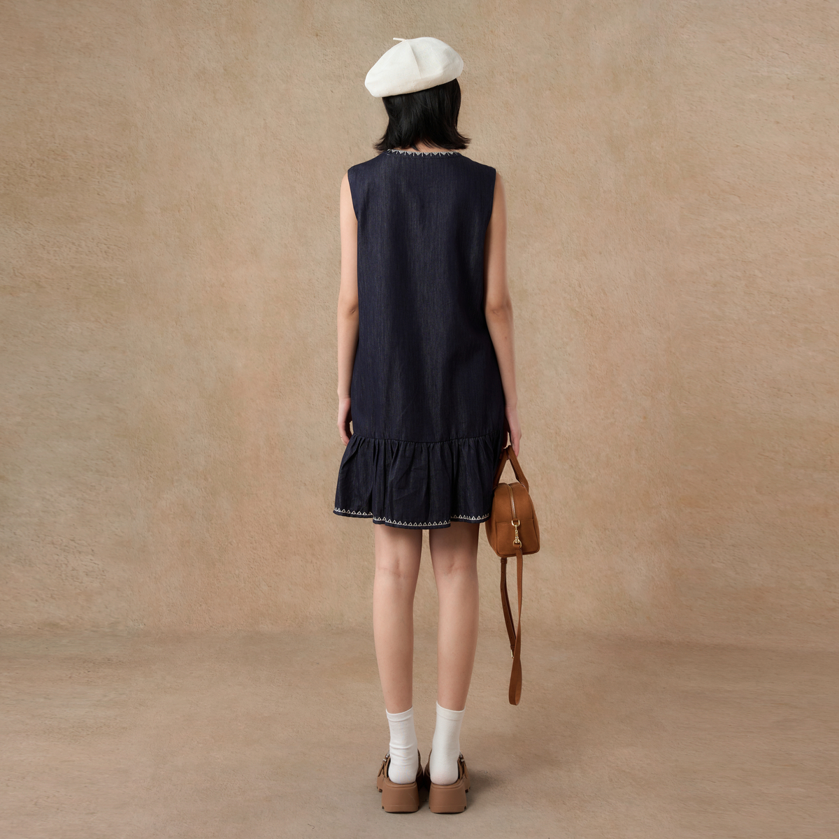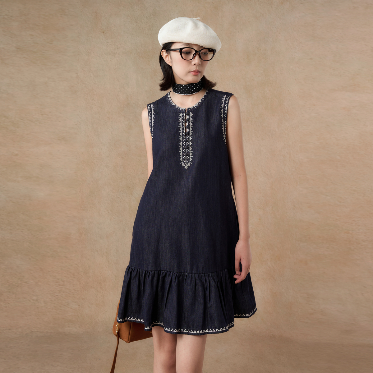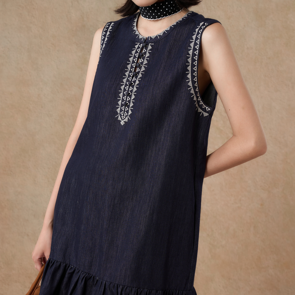裙子XHAB10565 气质无袖 西町村屋复古文艺民族风连衣裙女夏季 新款