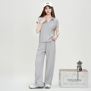 套装 雪中飞2025秋新款 夏季 T恤休闲长裤 舒适运动 女士Polo领短袖