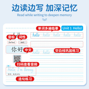 三四五六年级上册湘少版 英语字帖教材同步练字帖英文字母单词句子描红本练习手写体意大利斜体三起点小学生儿童2025教科书硬笔书法
