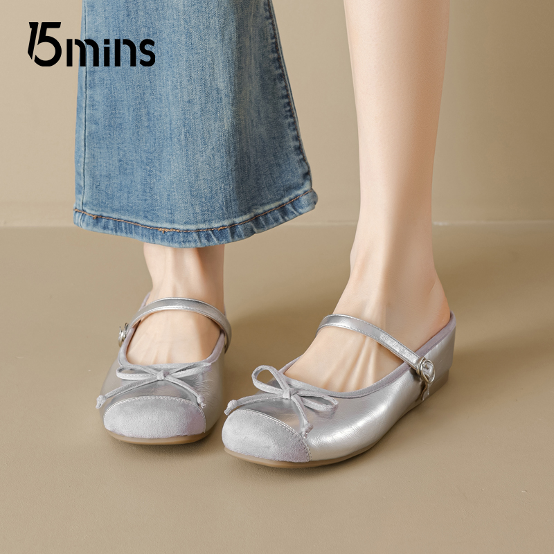 女款 银色一字带玛丽珍鞋 2025夏季 时尚 新款 15mins芭蕾风包头半拖鞋