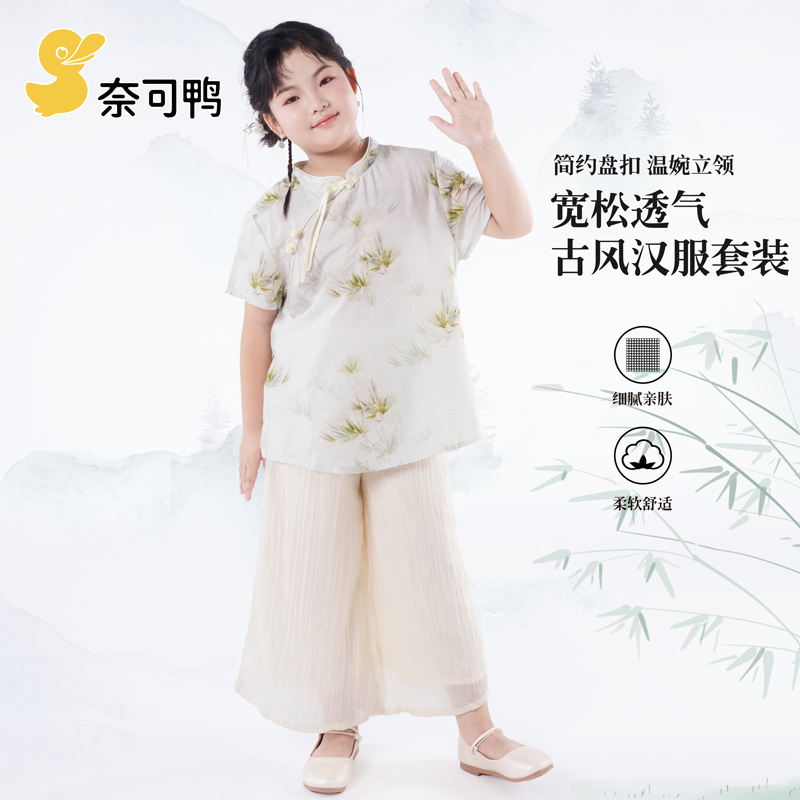 荷香艺梦儿童短袖 女男童夏小学生三字经弟子规演出服 汉服国学服装