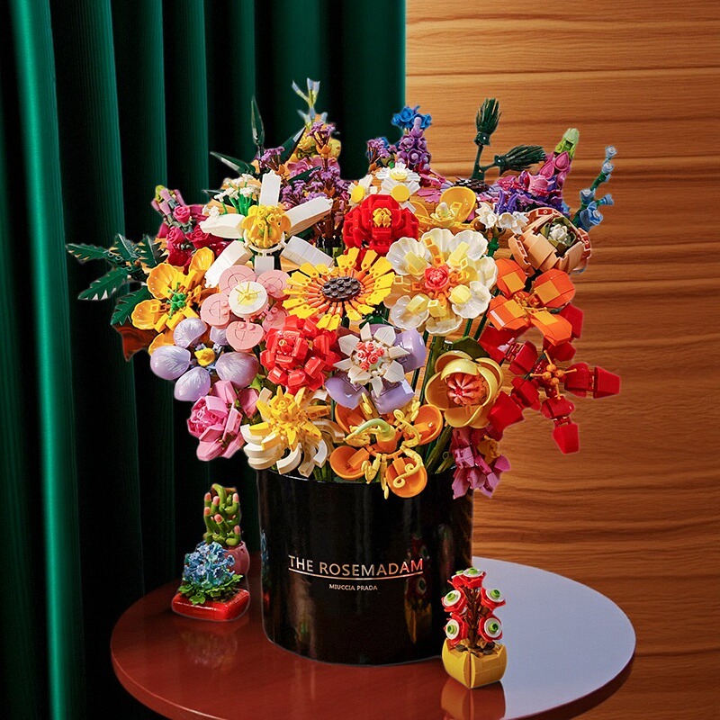 2025新款 花束积木抱抱桶玫瑰纪念生日送男女朋友女孩毕业七夕礼物