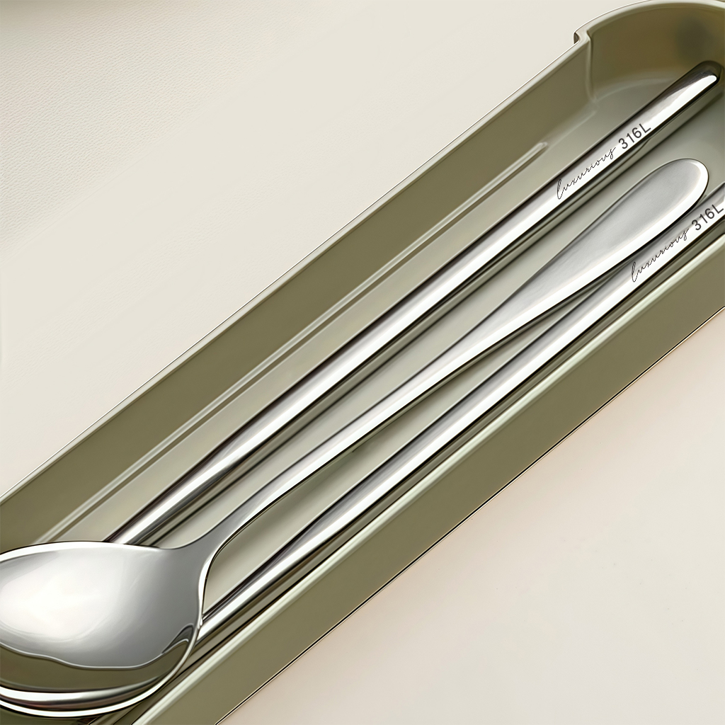 316不锈钢便携式 筷子勺子叉子外带可爱三件套学生餐具盒 餐具套装