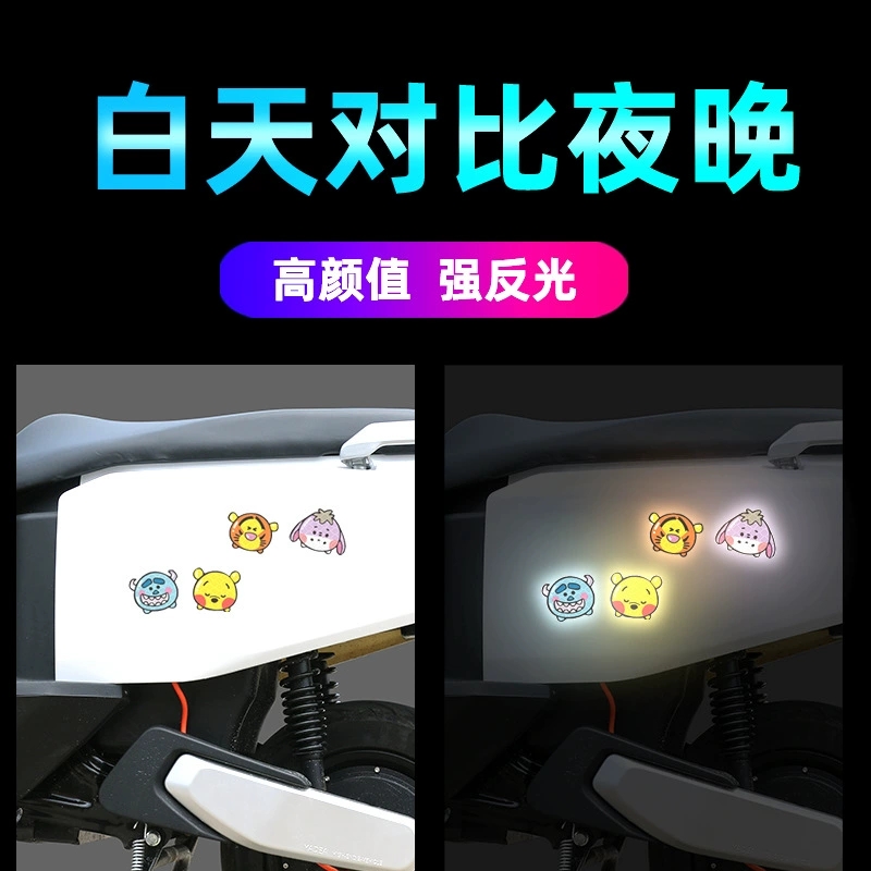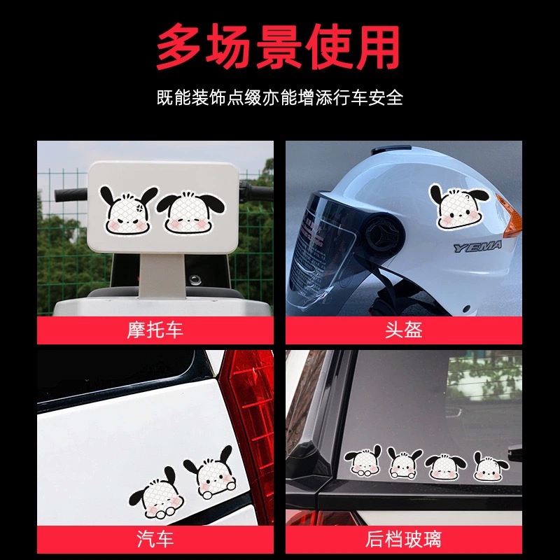 帕恰狗电动车贴纸卡通划痕遮挡车贴摩托车头盔夜间反光安全警示贴