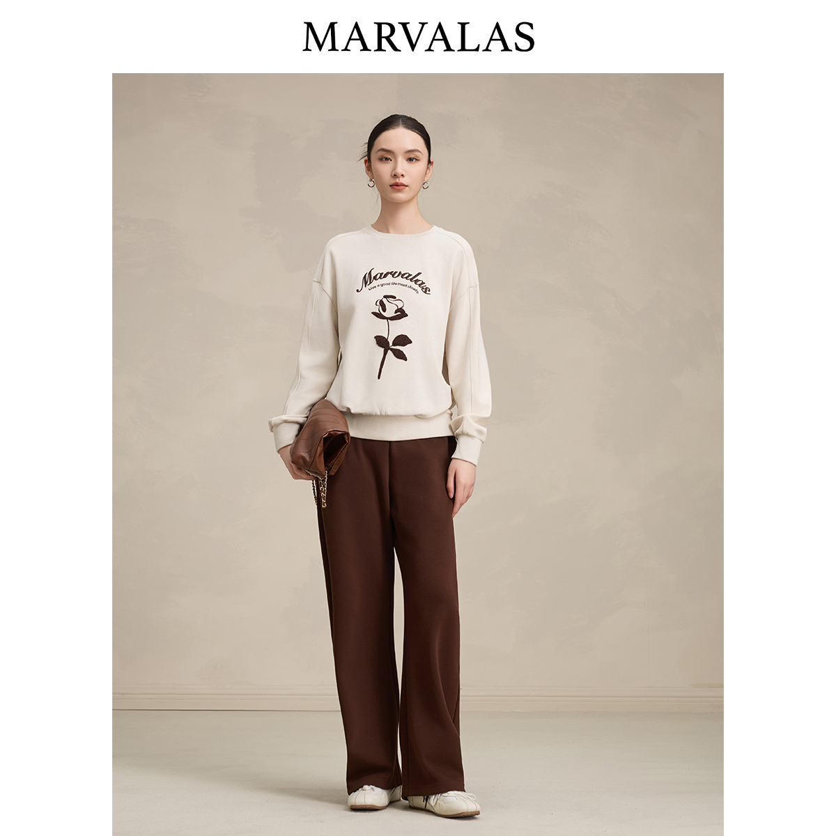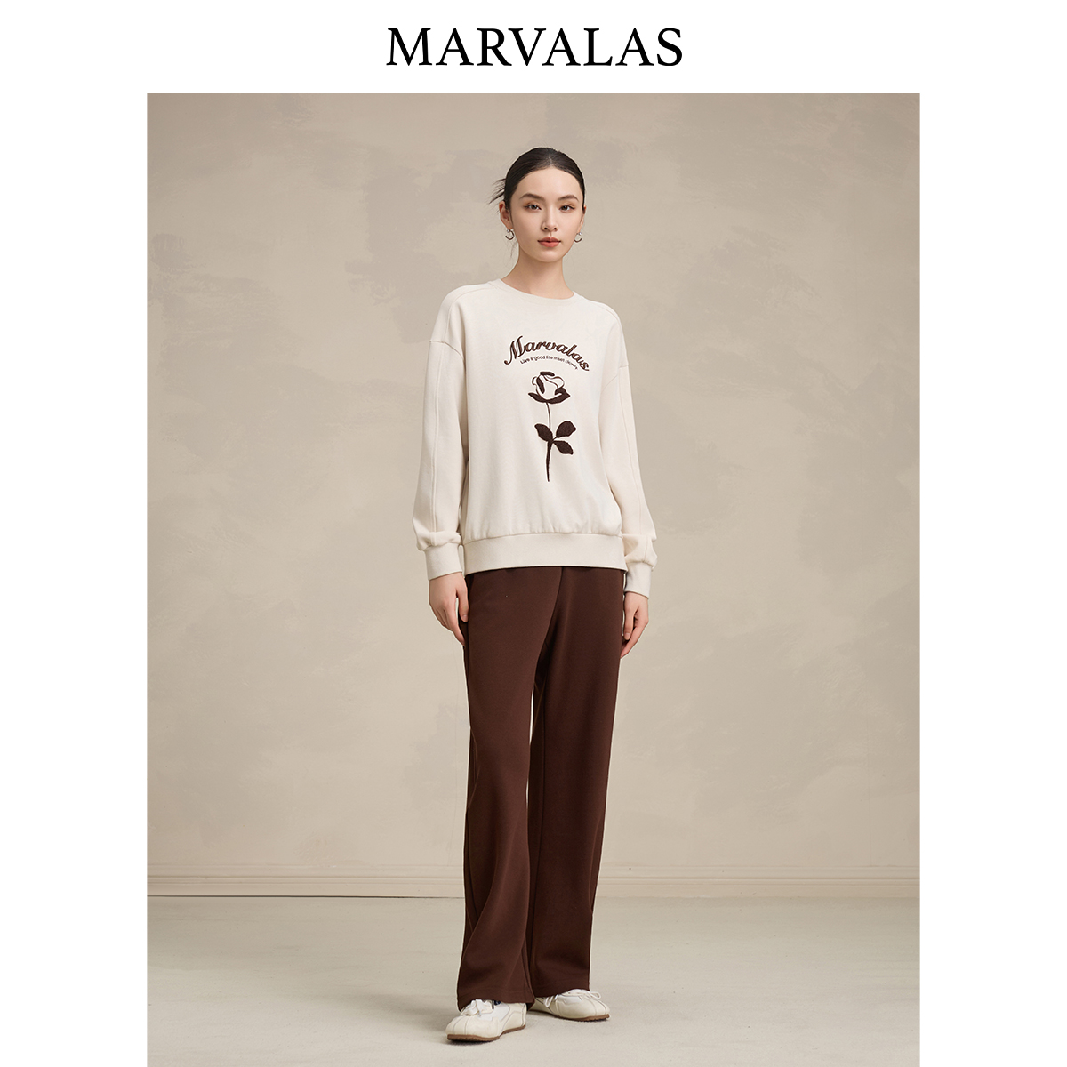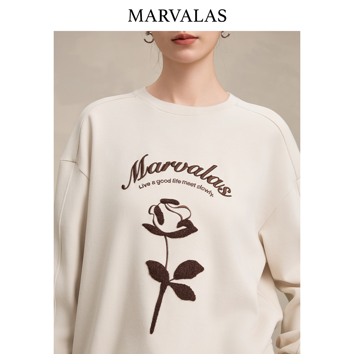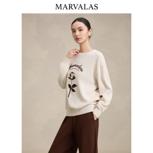 曼德诗花朵设计感卫衣2025年秋季 棉质套头上衣女宽松慵懒外套 新款
