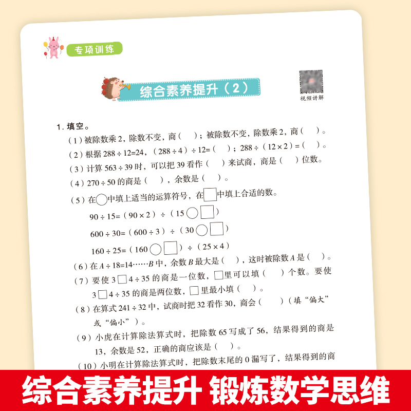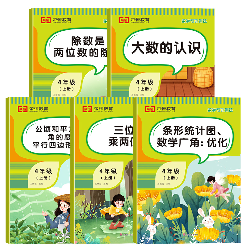 四年级上册数学专项训练除数是两位数除法大数认识条形统计图广角优化公顷和平方千米三位数除两平行四边形梯型4年级上小学练习册