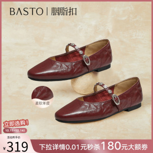 Bata羊皮书玛丽珍女2025复古软底宽楦百搭单鞋 AUO01AQ5