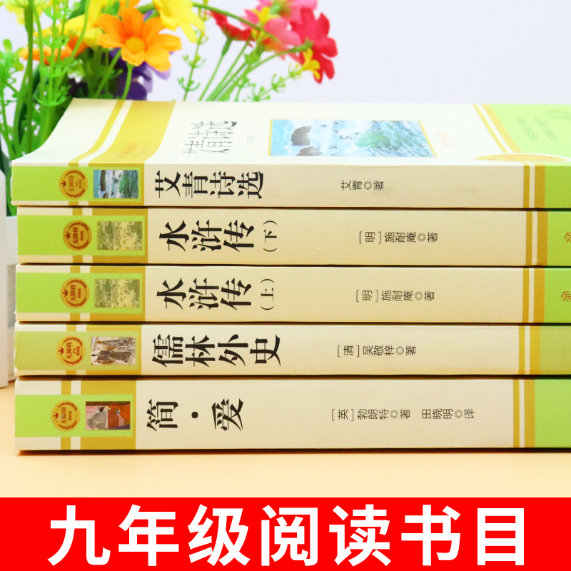 课外书初中课外阅读书籍名著九上配套人教版 水浒传简爱和儒林外史初三上册下册 书目艾青诗集K 原著完整版 艾青诗选九年级必读正版