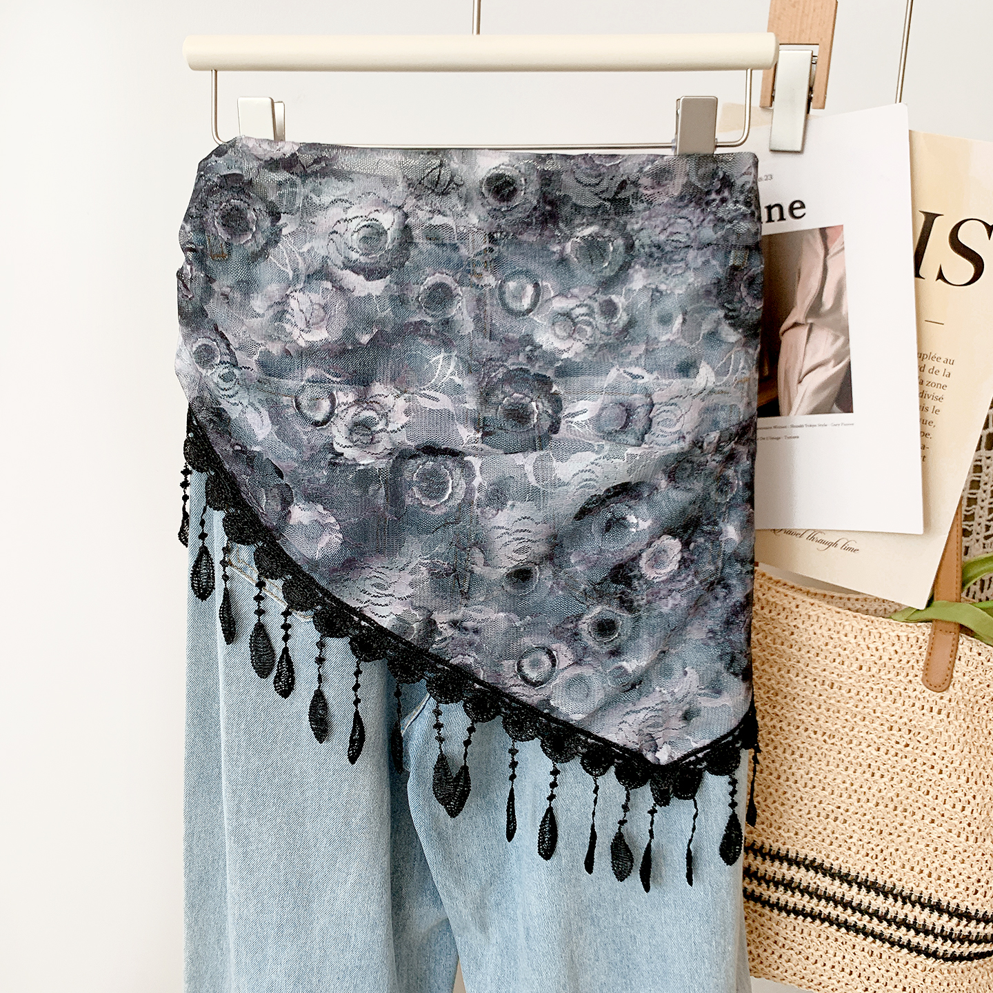 蕾丝镂空半身裙女叠穿纱裙百搭韩版 短裙屁帘春夏三角头巾2025新款