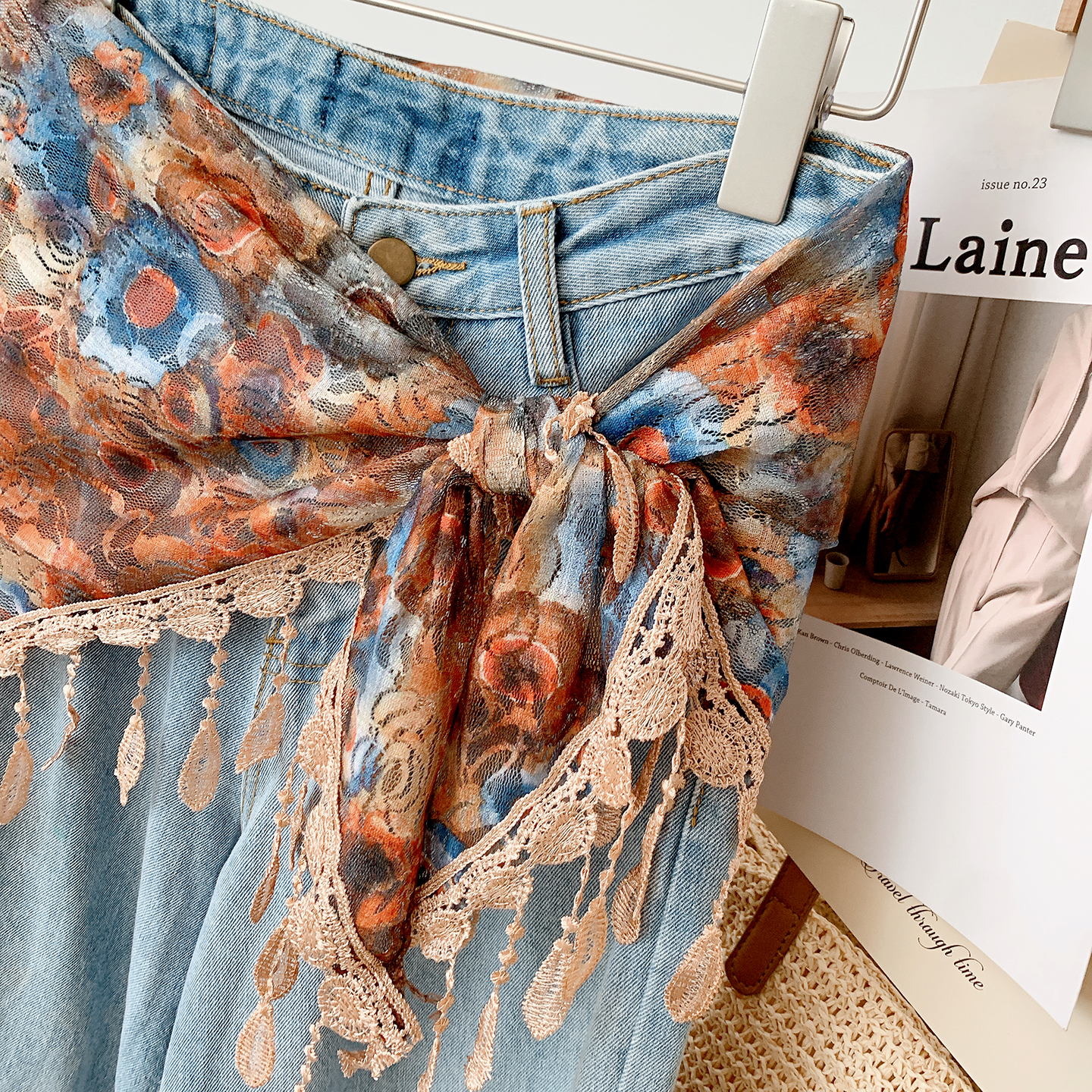 气质宽松下摆蕾丝拼接裙子女装 秋季 507358 2025新款 三福半身裙长款