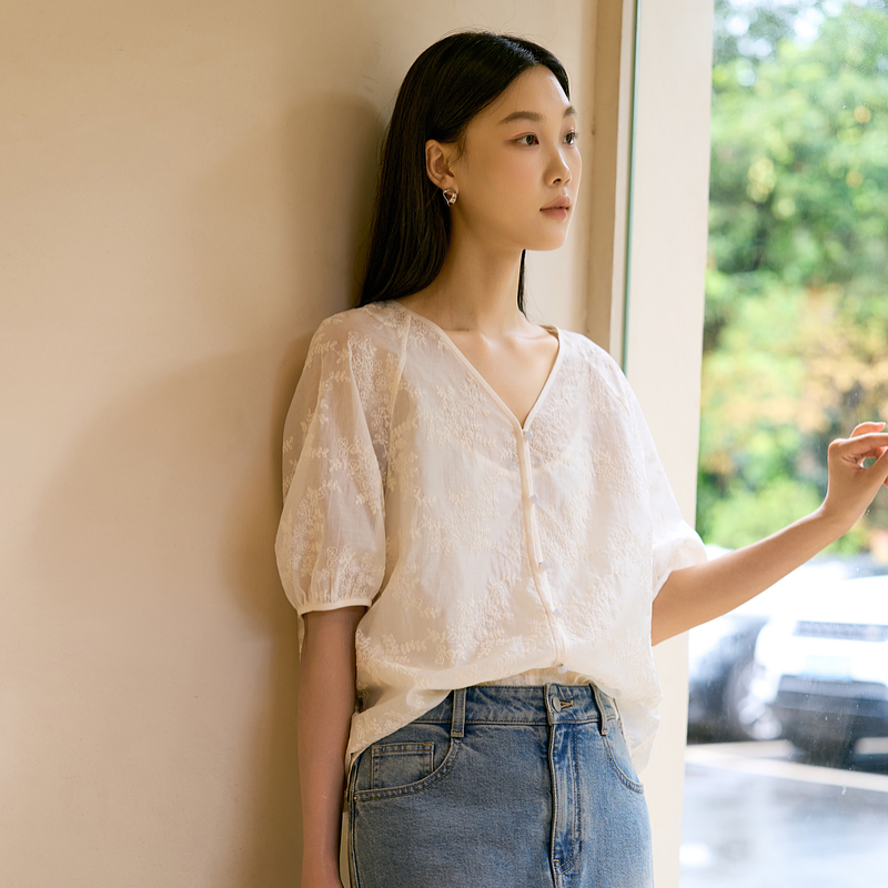 女秋季 纯棉落肩高智风显瘦百搭上衣衬衫 迪木尔风 RUISHI芮时