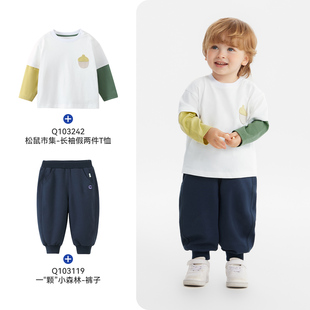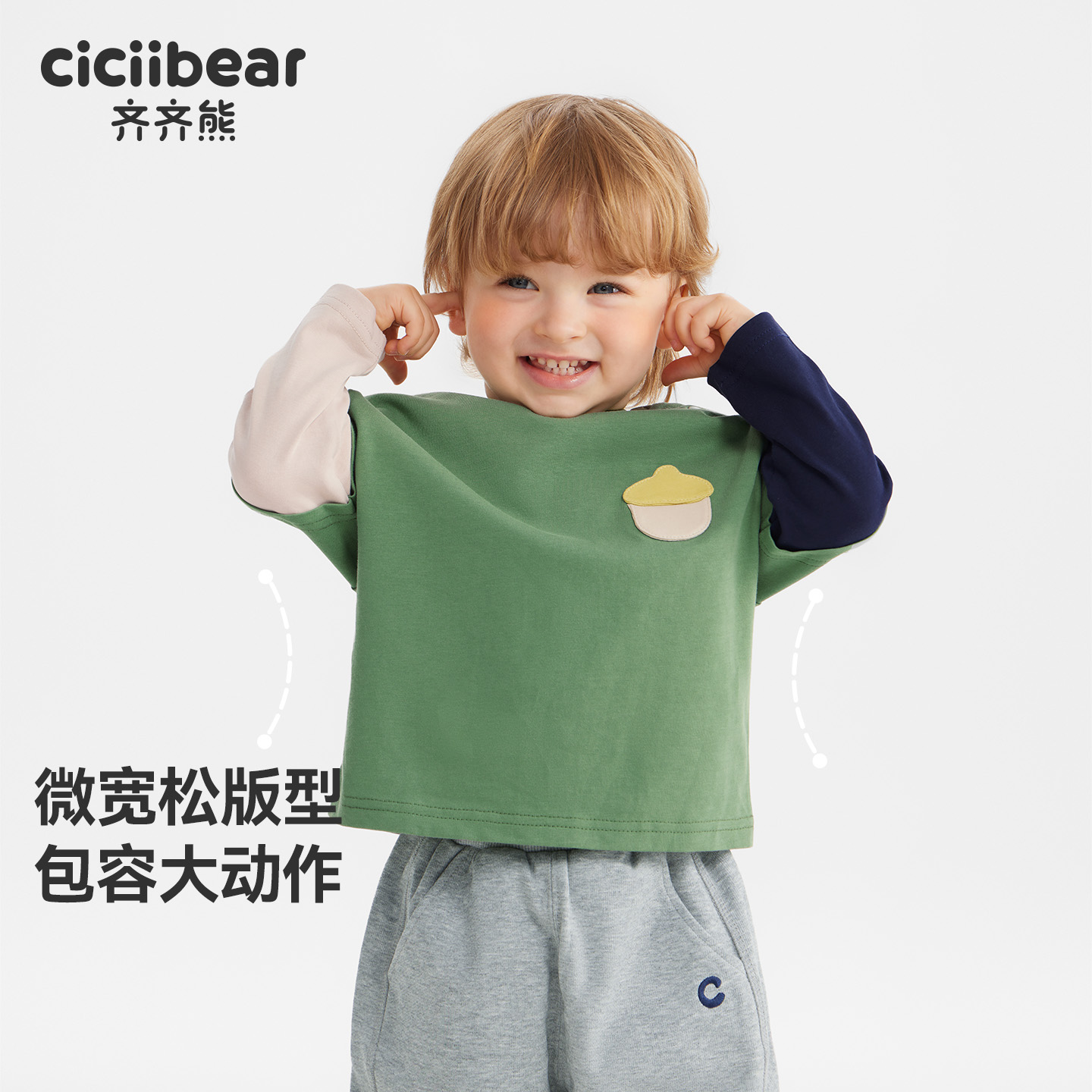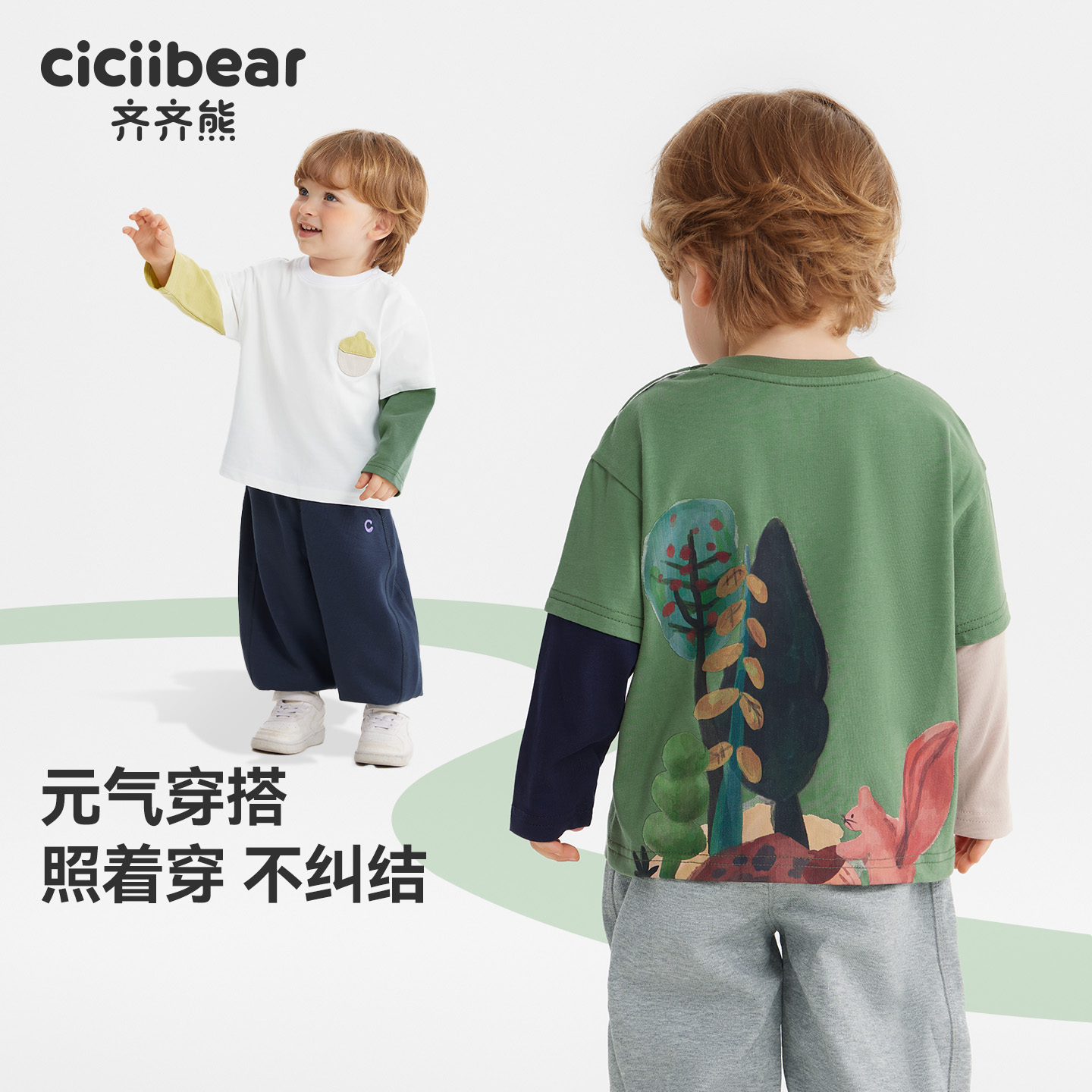 2025新款 T恤宝宝假两件春秋款 齐齐熊男童长袖 童装 7A抗菌100%棉
