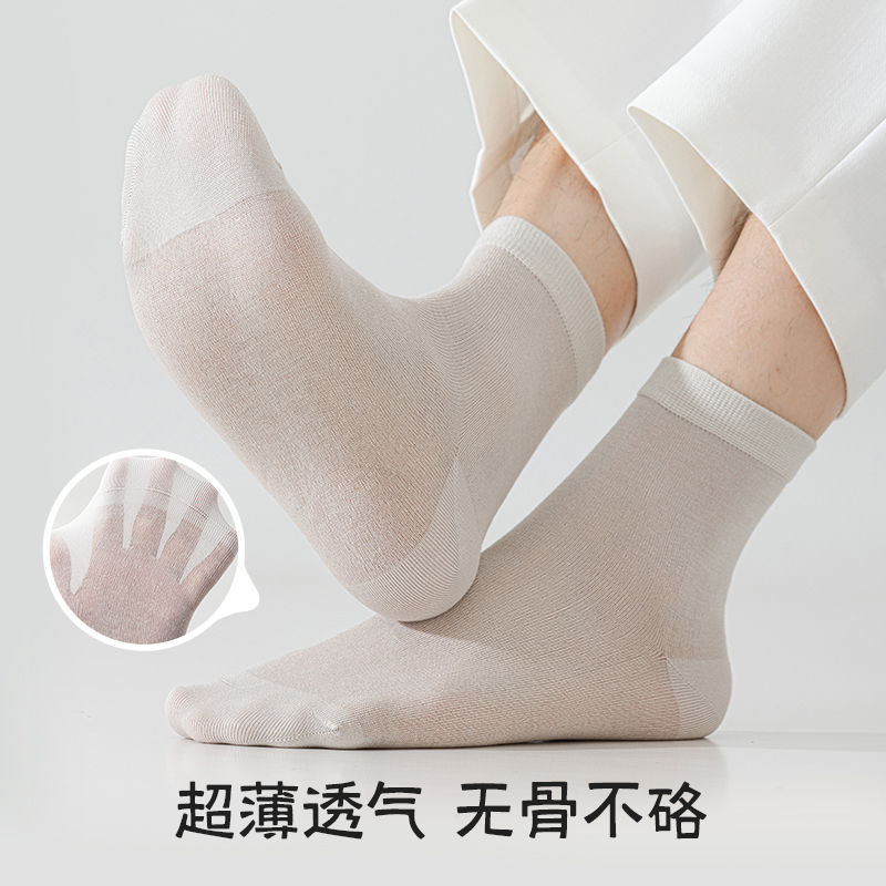 纯色长袜透气运动防臭吸汗黑色商务中筒袜 薄款 桑蚕丝袜子男士 夏季