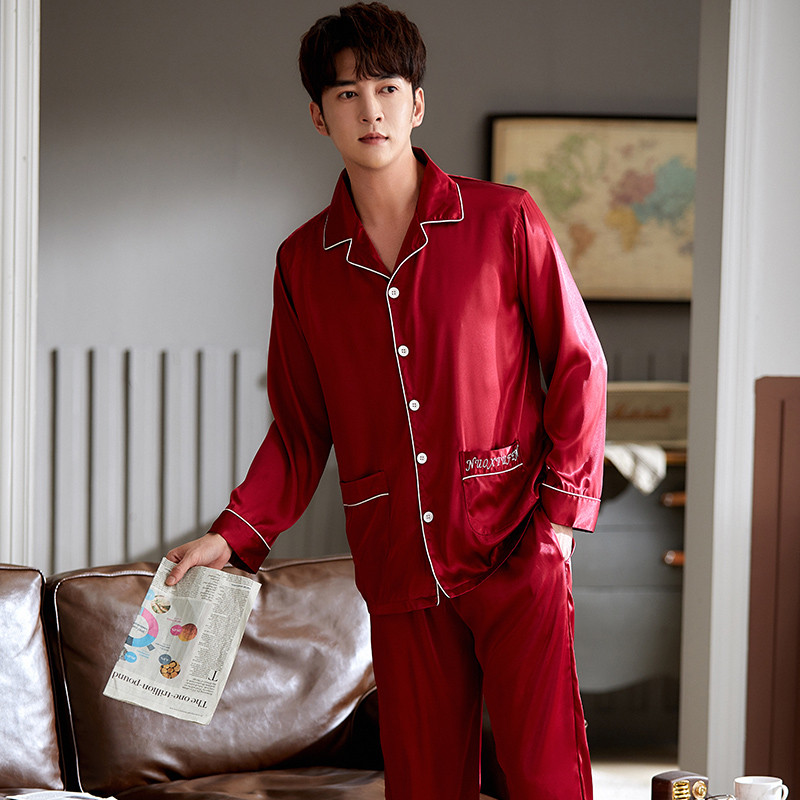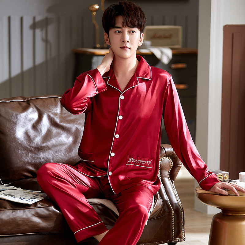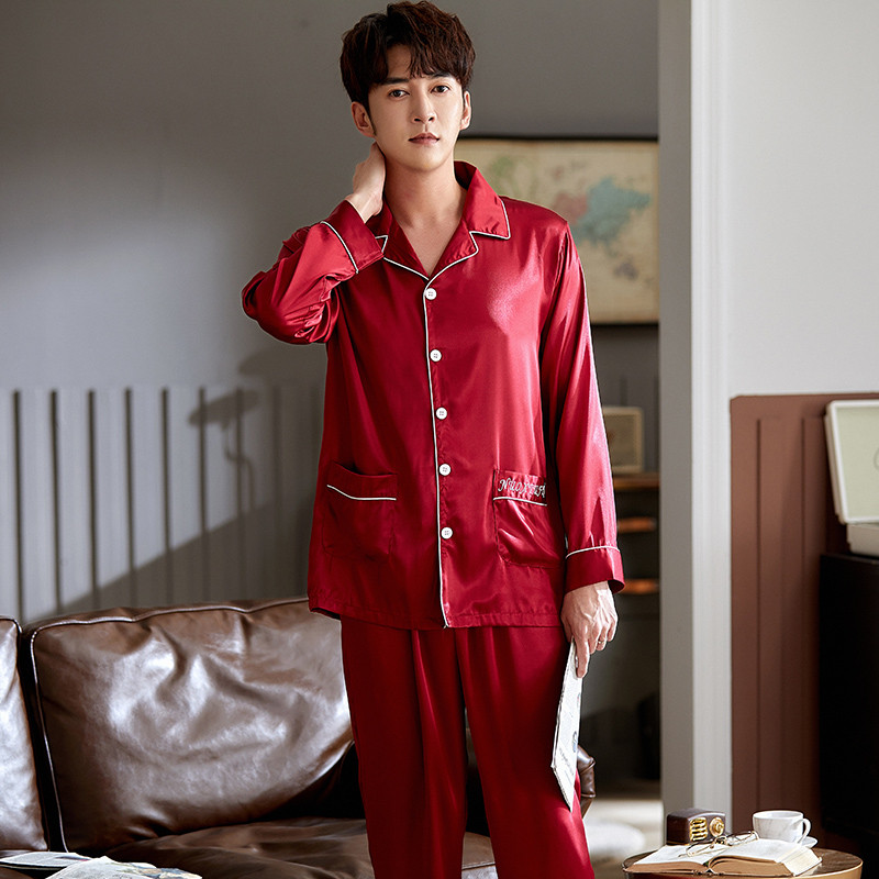 家居服套装 长袖 柔软春秋透气阳光棉睡衣男女 开衫 松山棉店棉柔男士