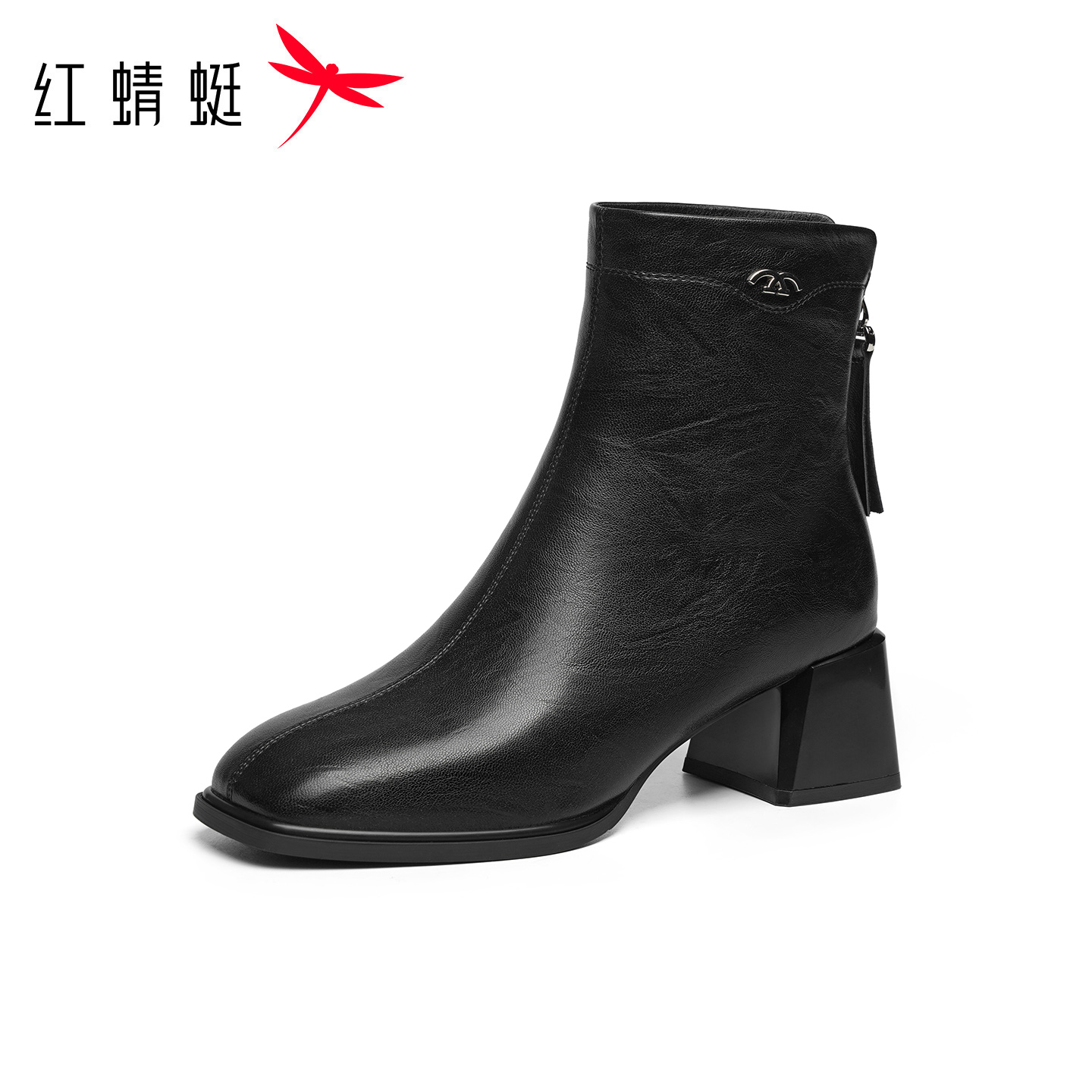 子粗跟皮鞋 女士短靴高跟鞋 女 女鞋 红蜻蜓中年妈妈靴子2025冬靴新款