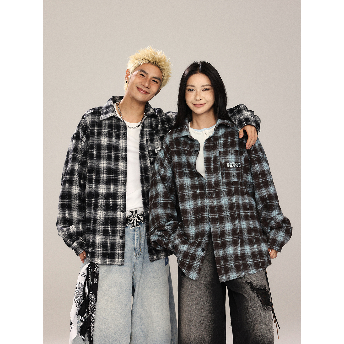 衬衫 刺绣仿扎染长袖 404MOB美式 男加厚复古格子外套女 周深同款