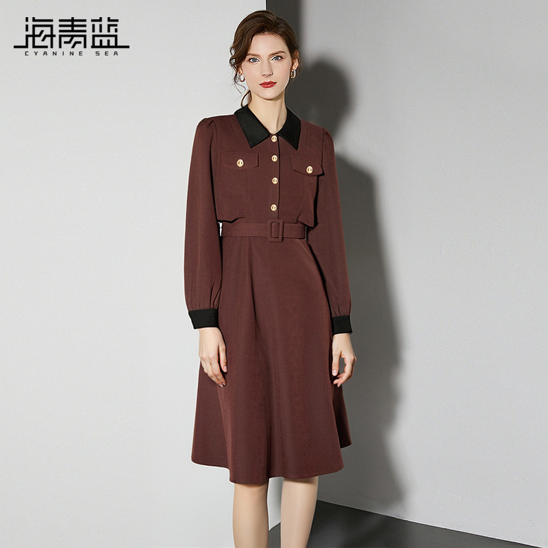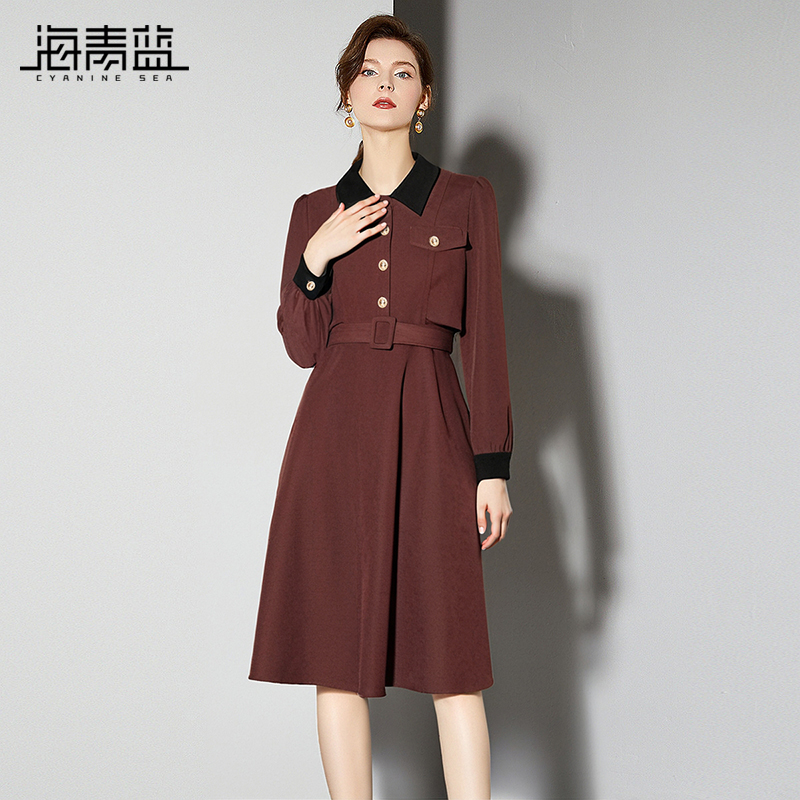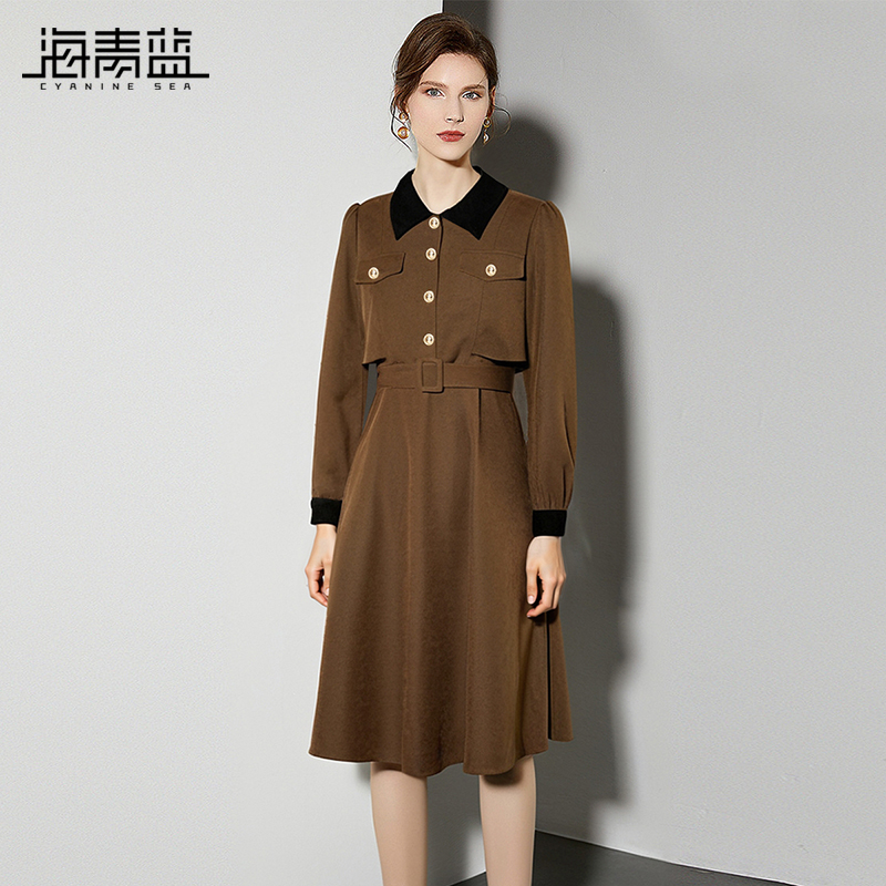 裙子05465855 拼接好看宽松圆领长袖 佐丹奴假两件连衣裙女秋季 新款