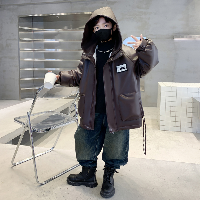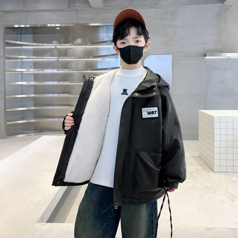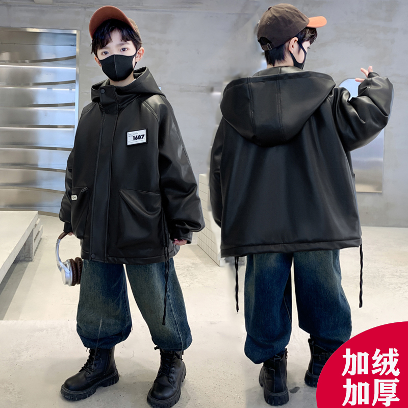 男孩皮衣潮 中大童加绒加厚儿童棉袄冬款 男童棉服冬装 外套2025新款
