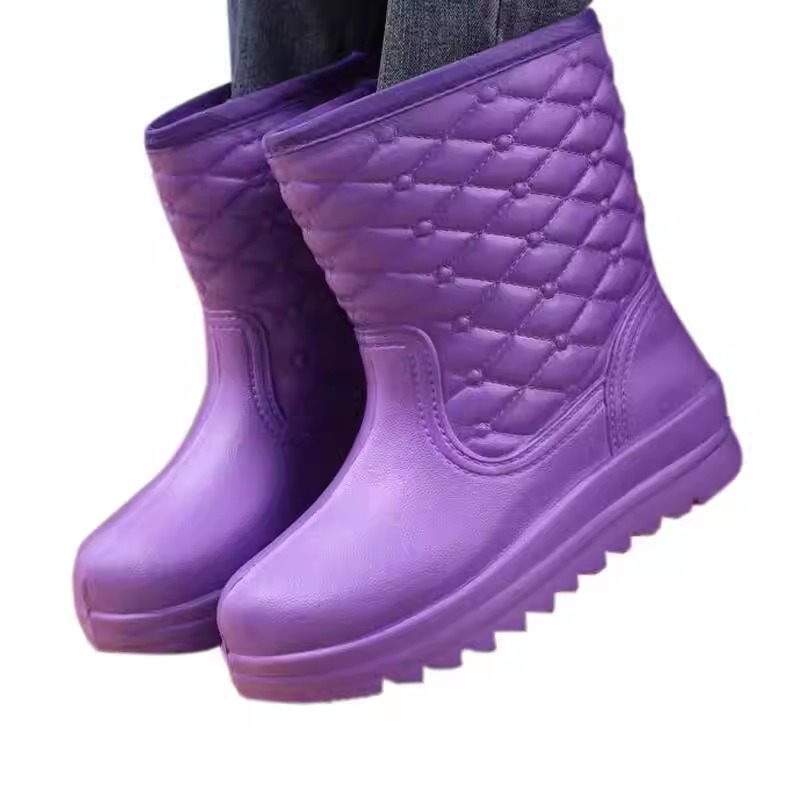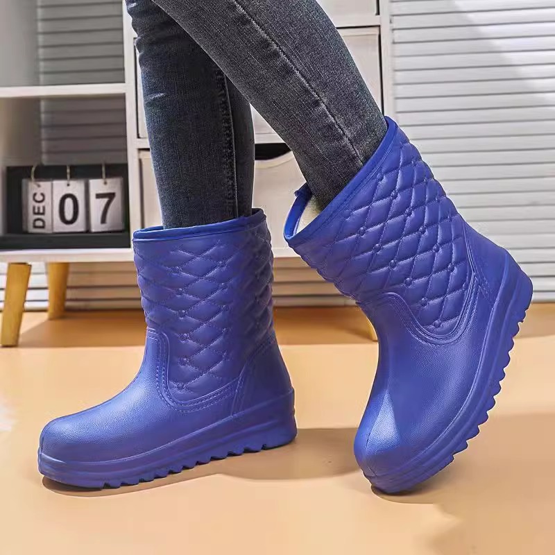 泡沫加绒雨靴防滑雨靴厨房市场防水鞋 男女长筒冬季 加厚保暖棉水鞋
