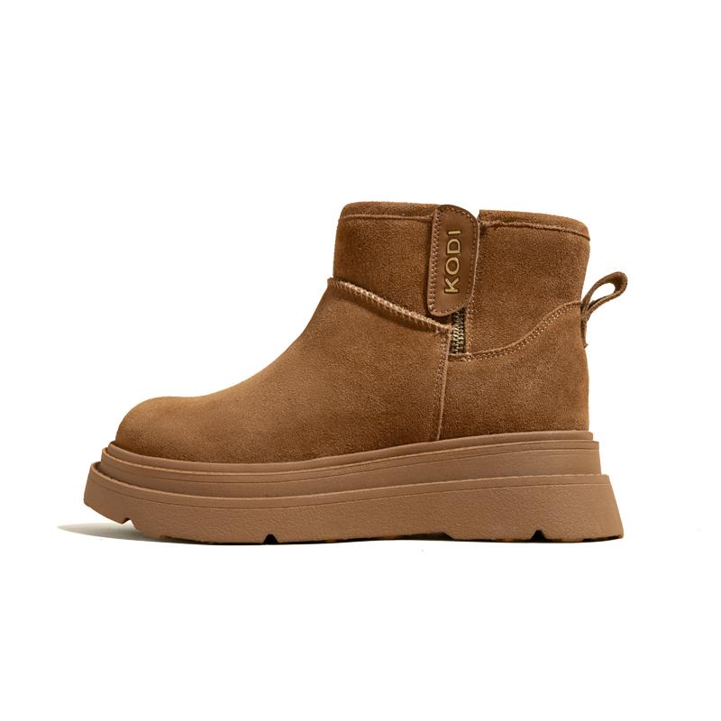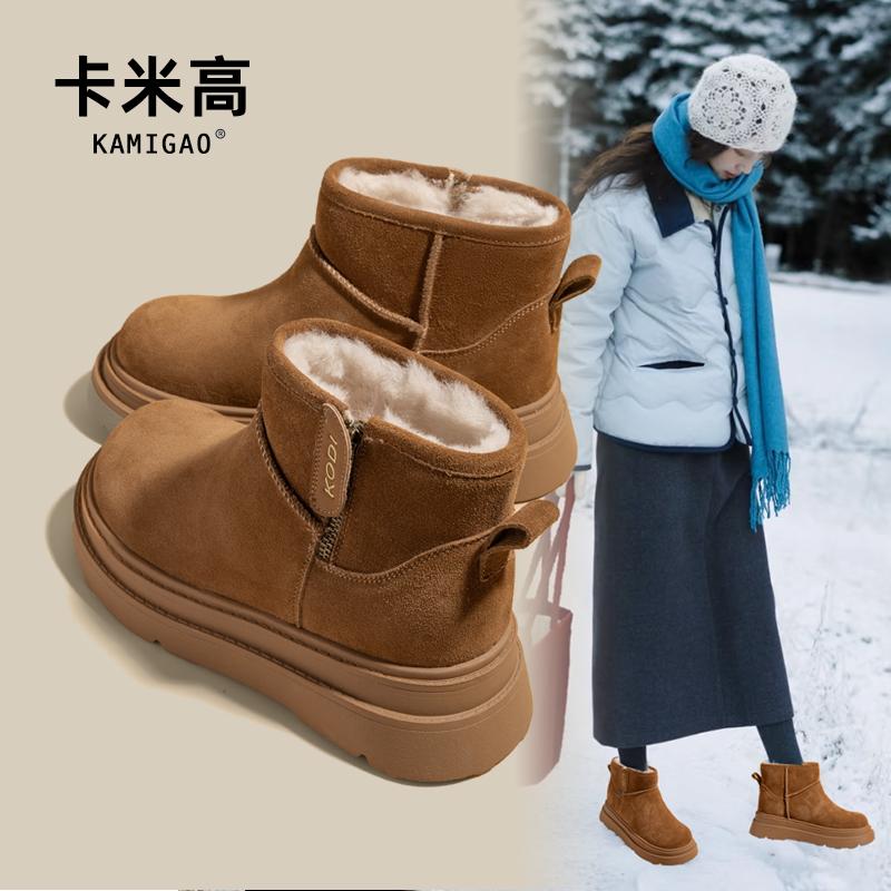 真皮防滑厚底短靴子 加绒保暖棉鞋 8cm内增高雪地靴女2025冬季 新款