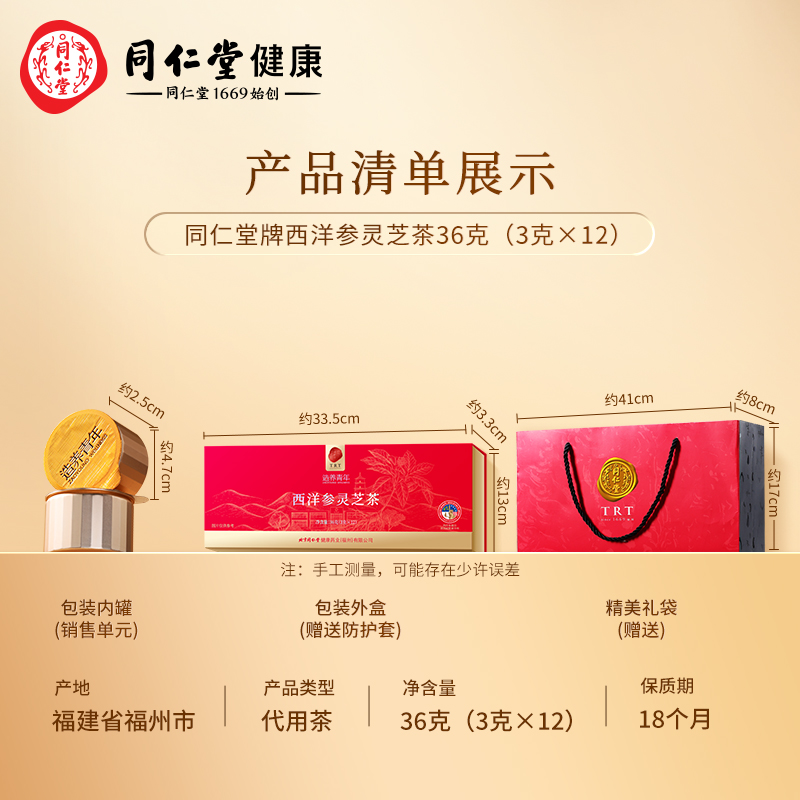 同仁堂品牌 北京同仁堂西洋参灵芝茶礼盒养生茶送长辈滋补礼品