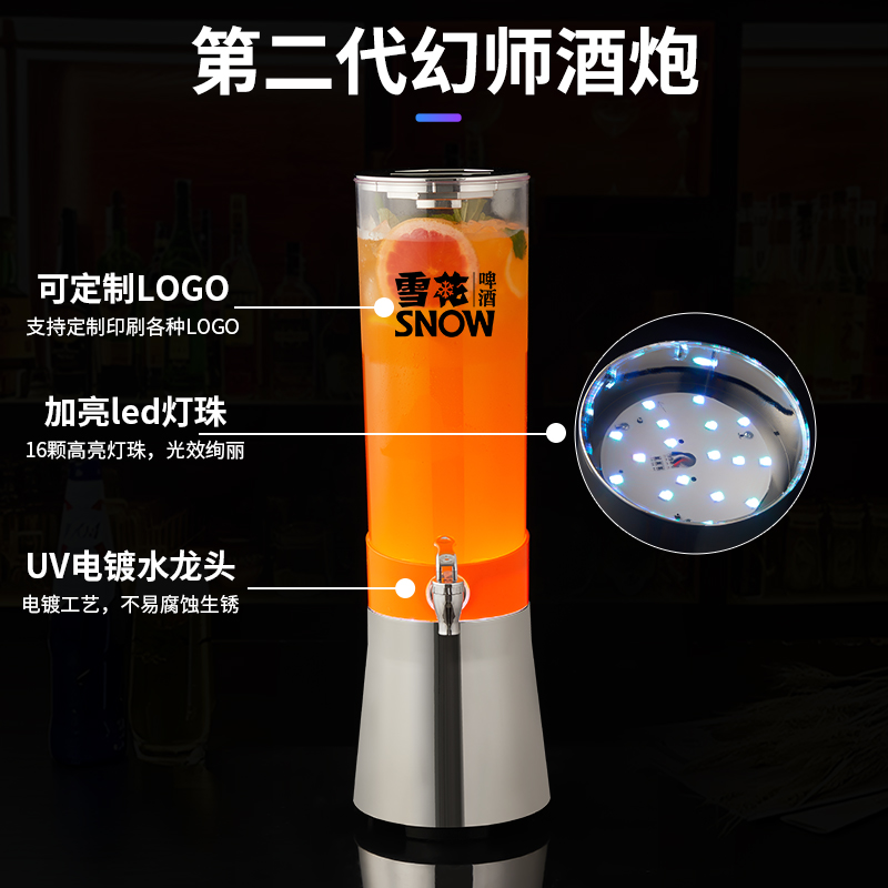 发光酒炮3升酒吧啤酒桶带龙头网红扎啤桶鸡尾酒饮料桶可乐桶容器