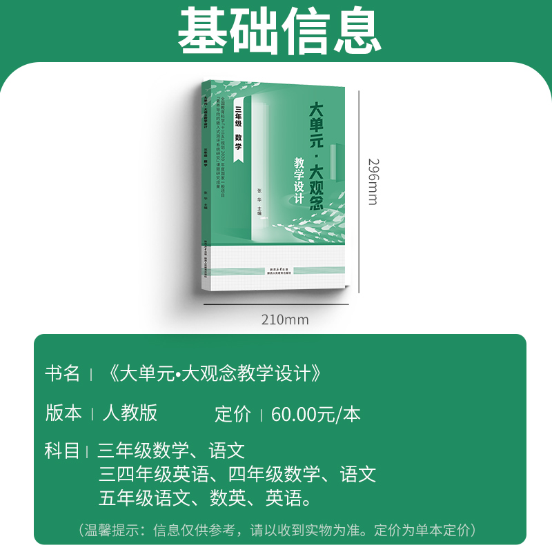 大单元 素养导向嵌入式 大观念教学设计教师用书教师手册语文数学英语三四五年级 社数学 测评系统研究 陕西人民教育出版 金太阳教育