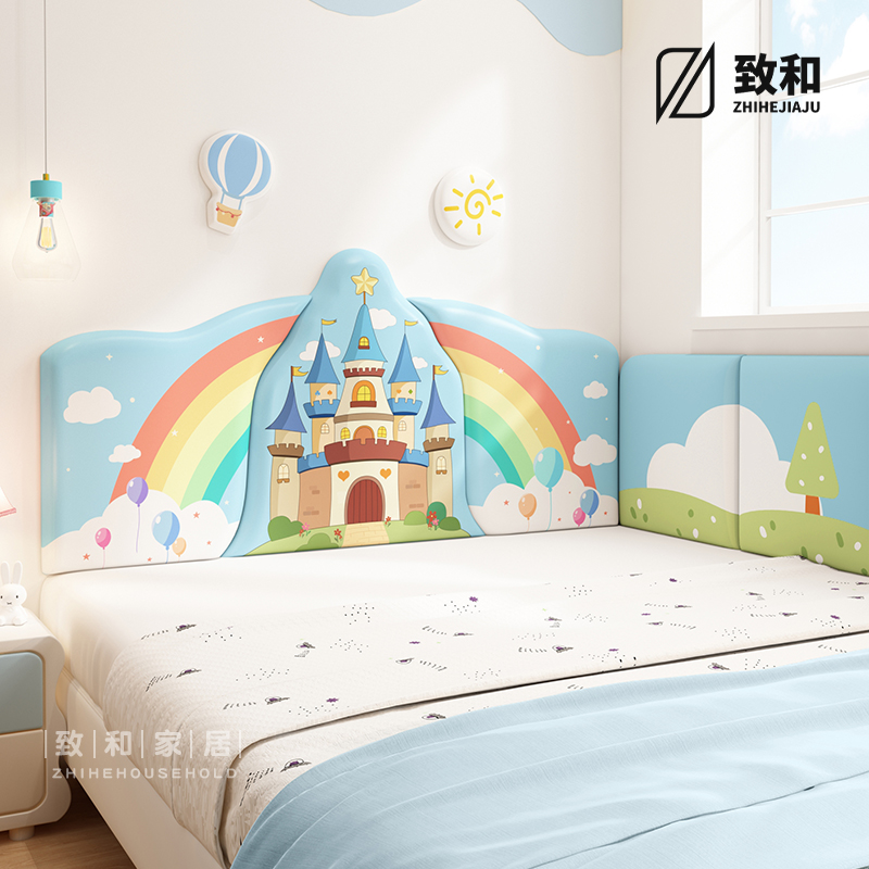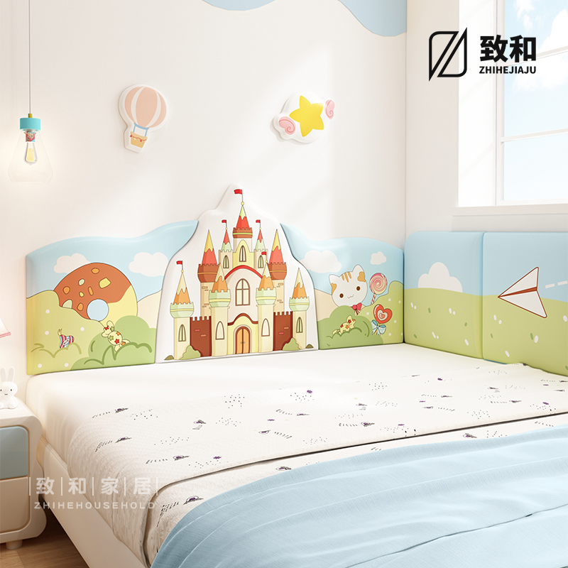 榻榻米软包墙围儿童房女孩城堡床头靠背软包防撞墙贴无床头护墙板