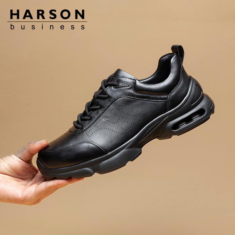 子透气黑色商务休闲皮鞋 鞋 男士 公务通勤鞋 哈森男鞋 真皮运动鞋 新款
